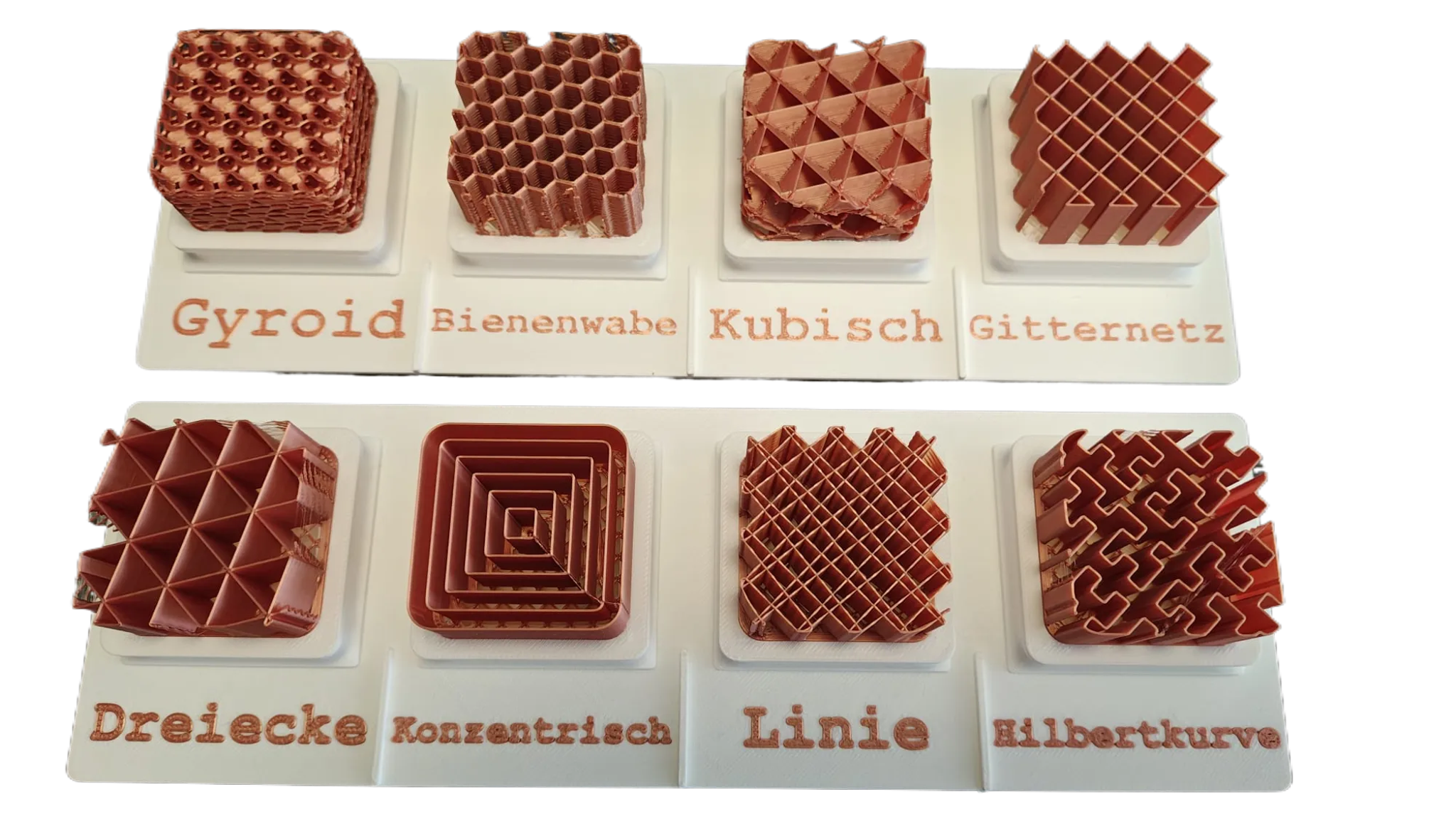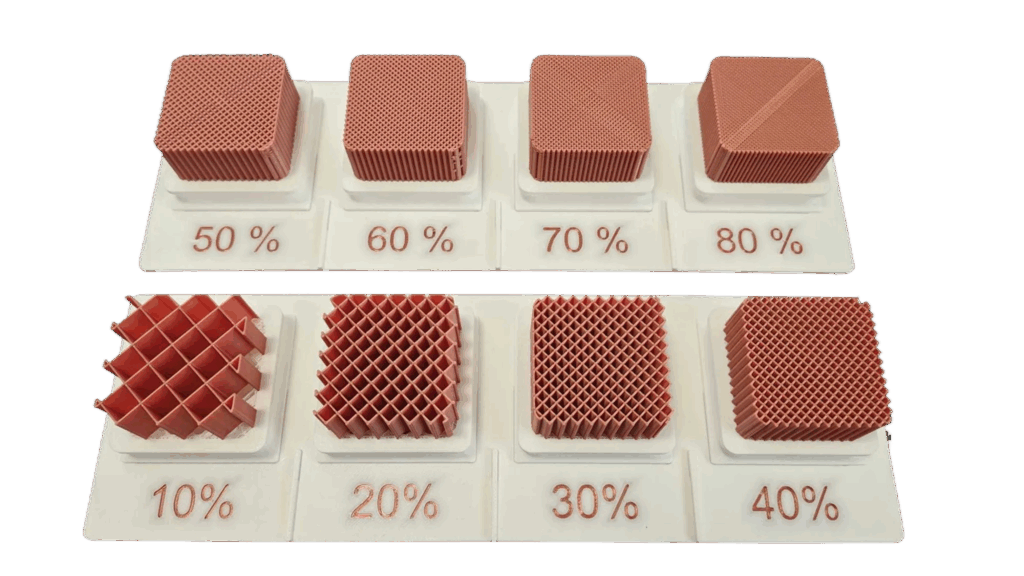 Infill: Wird nur gebraucht, wenn ein Teil regelmäßig Kraft oder Druck abbekommt – z. B. stabilere Halterungen, funktionale Clips, Teile die nicht nachgeben dürfen.